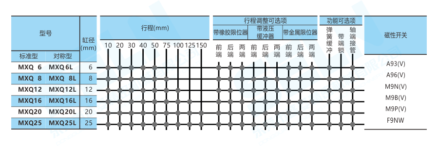 | 緩沖: | 橡膠緩沖(標(biāo)準(zhǔn))、液壓緩沖器、金屬限位器 |