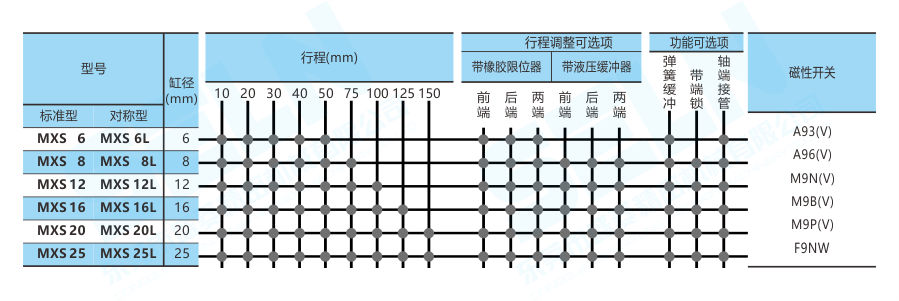 | 緩沖: | 橡膠緩沖(標準)、液壓緩沖器、金屬限位器 |