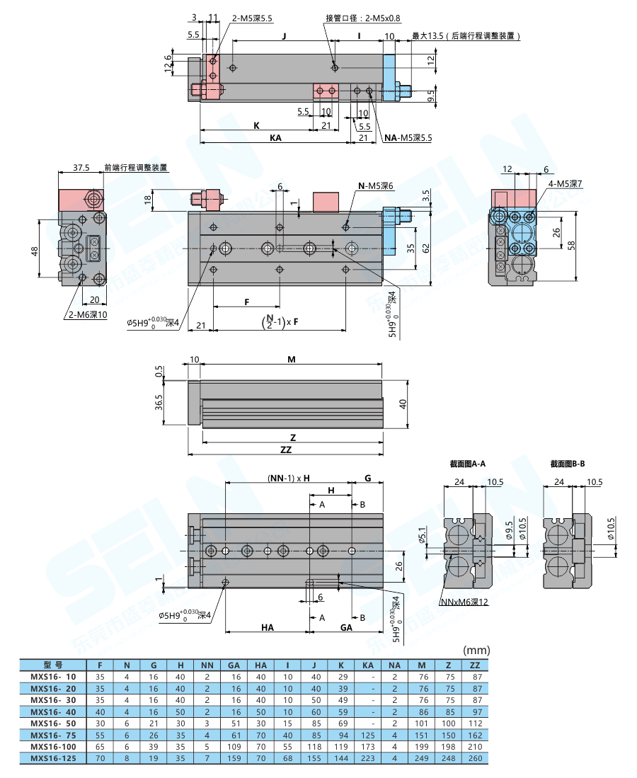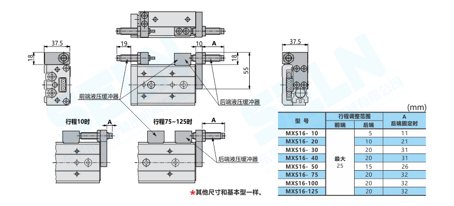 • MXS16-□BS\BT\B:帶液壓緩沖
