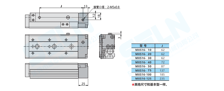 • 滑臺氣缸MXS16