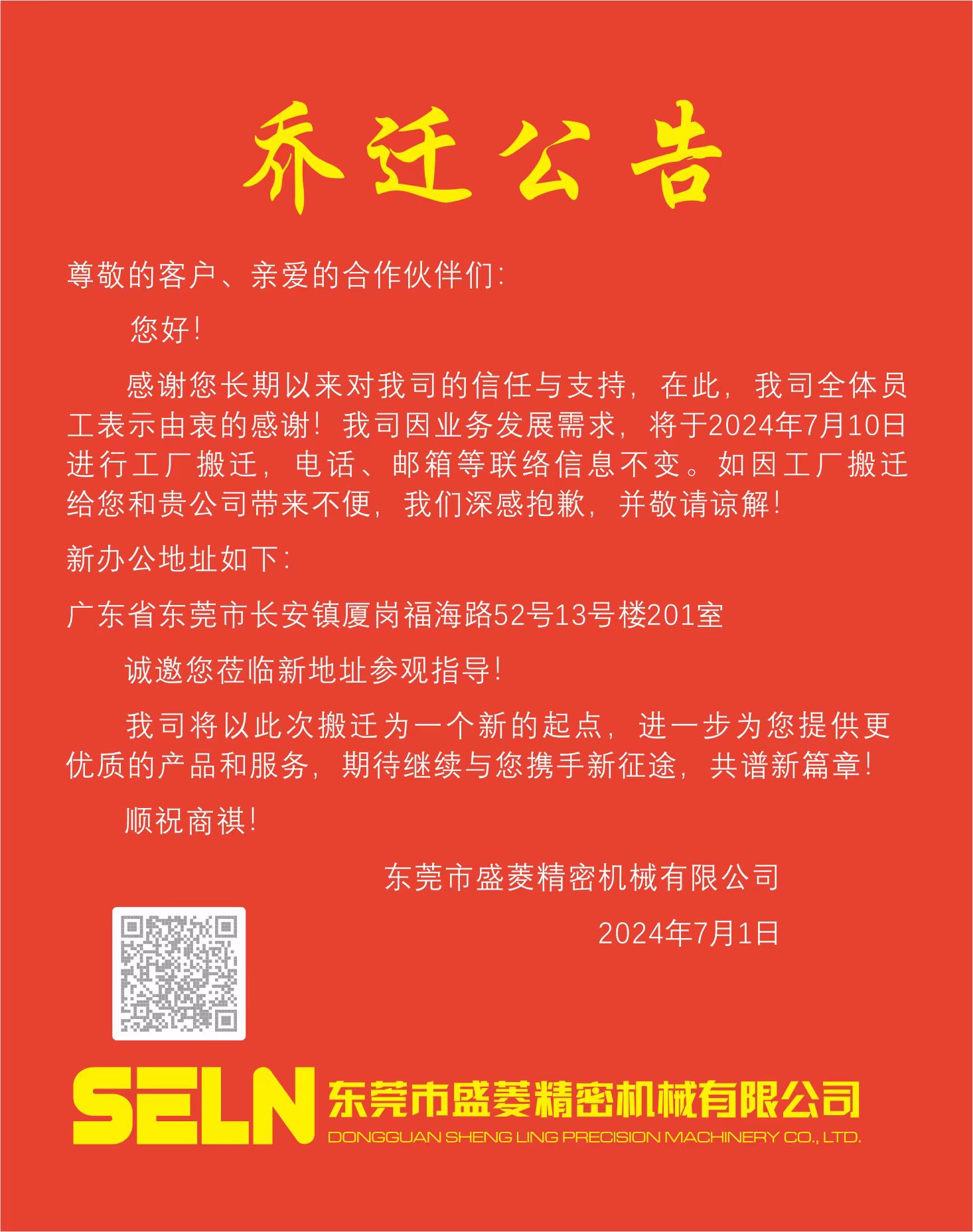 【重要通知】7月10日工廠搬遷公告