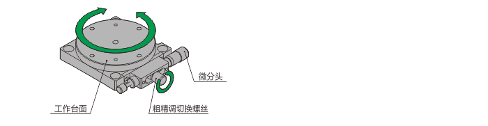 松掉粗精調切換螺絲后,就可以用手將工作臺面進行360粗調。