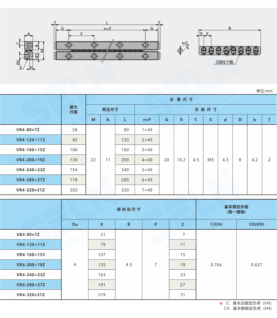 硬度: 軌道HRC58~,滾子HRC60~